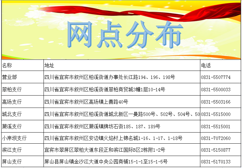 地址:四川省宜賓市敘州區(qū)柏溪街道辦事處長江路194、196、198號 郵編:644600