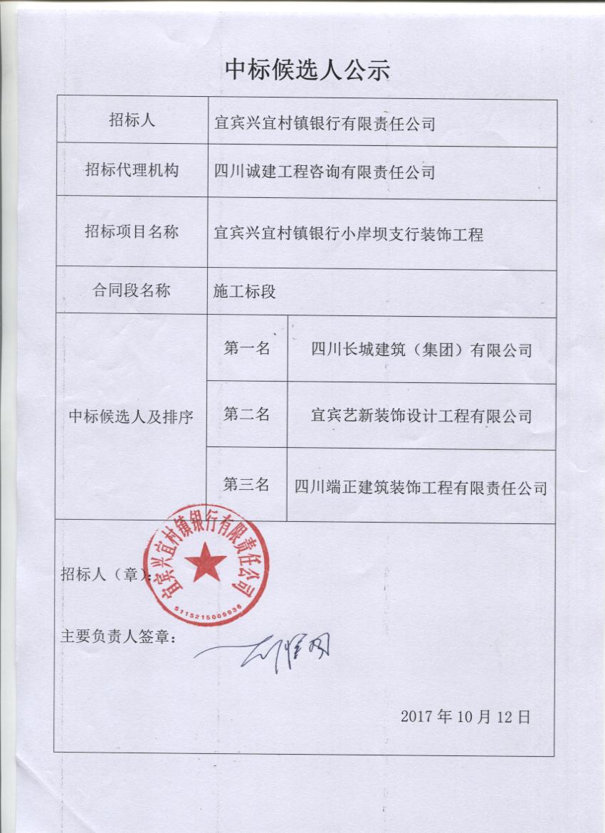 小岸壩支行裝飾工程中標(biāo)候選人公示